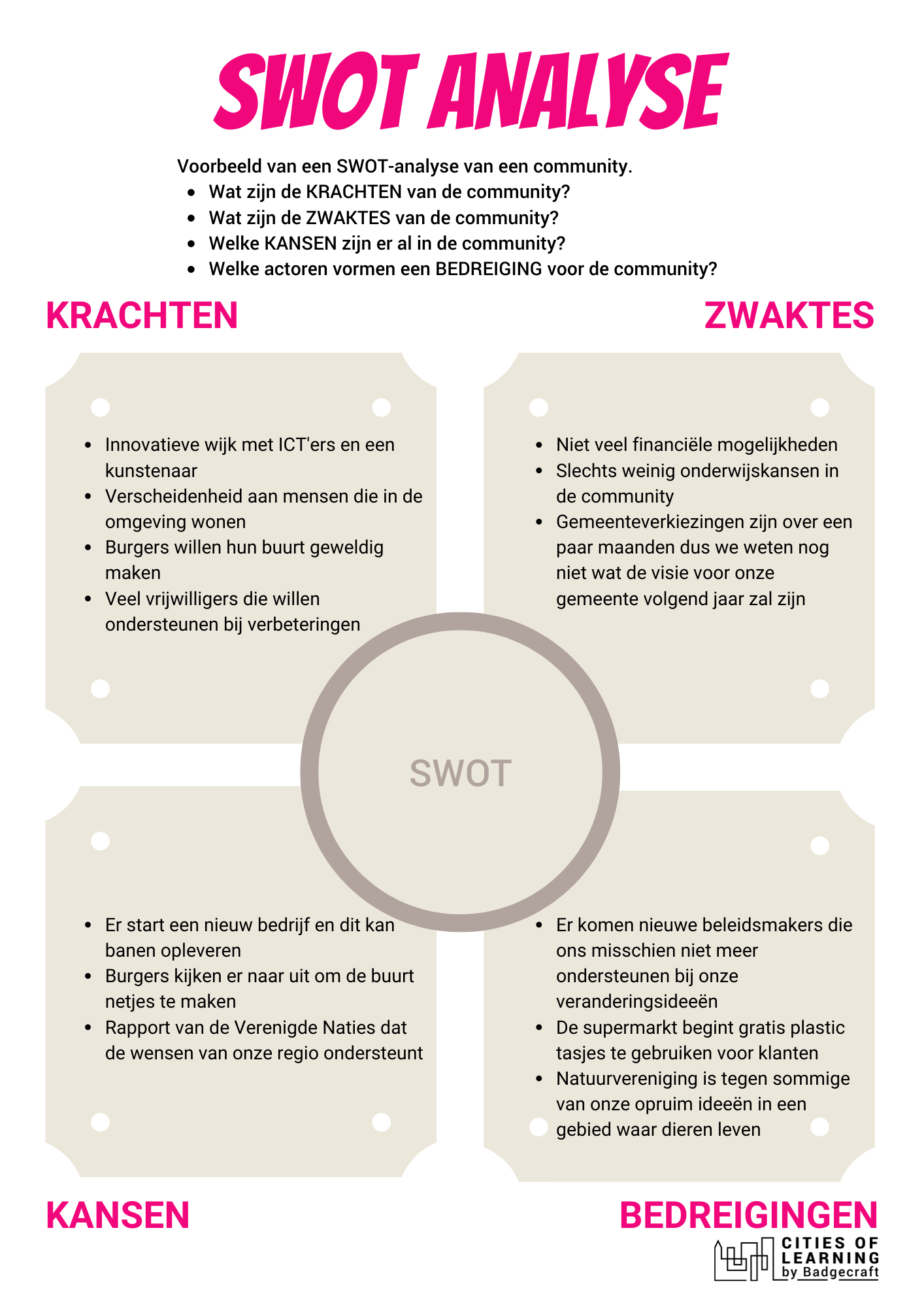 Voorbeeld van een SWOT-analyse voor een community: