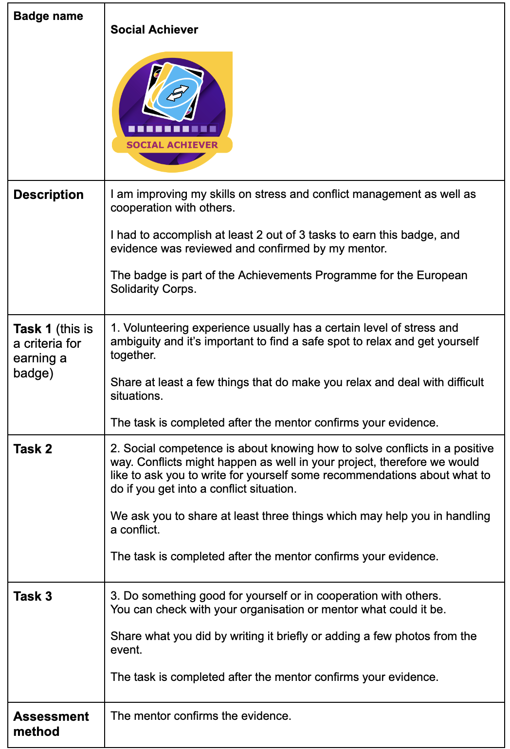 Ovaj bedž je povezan sa jednim od ključnih kompetencija za celoživotno učenje – ličnom i socijalnom kompetencijom.